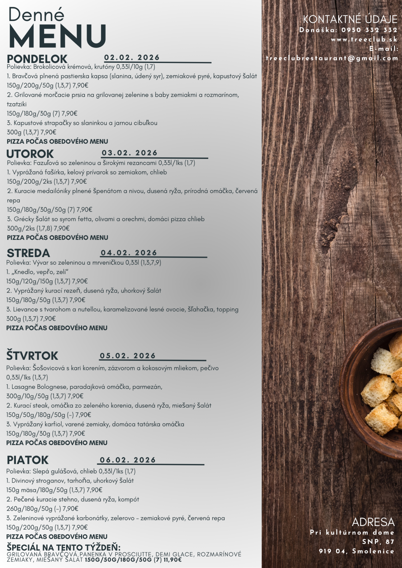 Príďte si pochutiť na dnešnom menu, oddýchnuť si a dopriať si príjemný obed u nás.